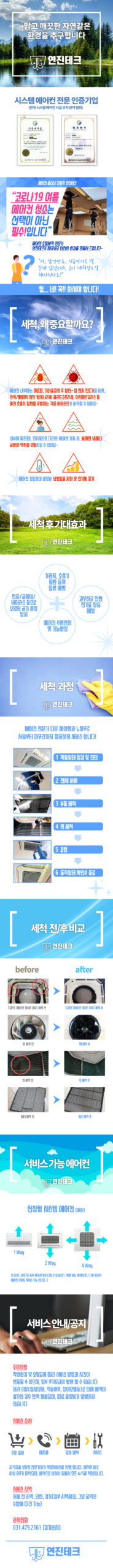 에어컨 청소를 전문으로 하는 회사의 느낌을 다양한 사진 이미지와 일러스트 아이콘으로 표현했습니다.